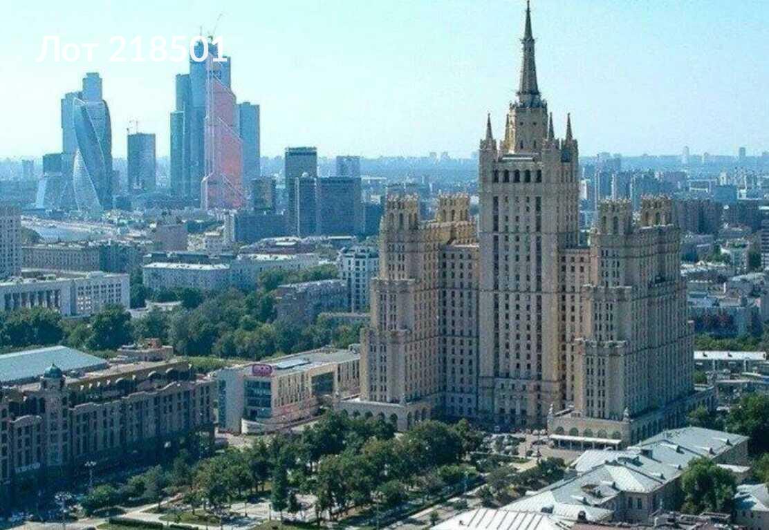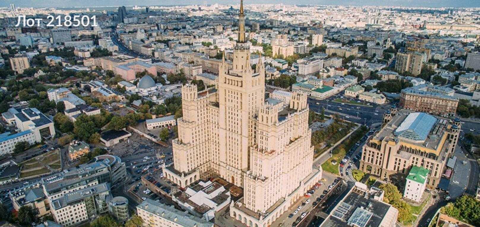 Лот № 218501 Продаётся коммерческое помещение общей площадью 1575,4 квадратных метра, расположенное на первом этаже сталинской высотки на Кудринской площади. Высота потолков составляет 4 метра, что делает помещение подходящим для различных видов бизнеса.Здание расположено в 700 метрах от Дома Правительства Москвы, Министерства природных ресурсов и Американского посольства. Также в 150–200 метрах находятся две станции метро и парковка на 20 автомобилей.